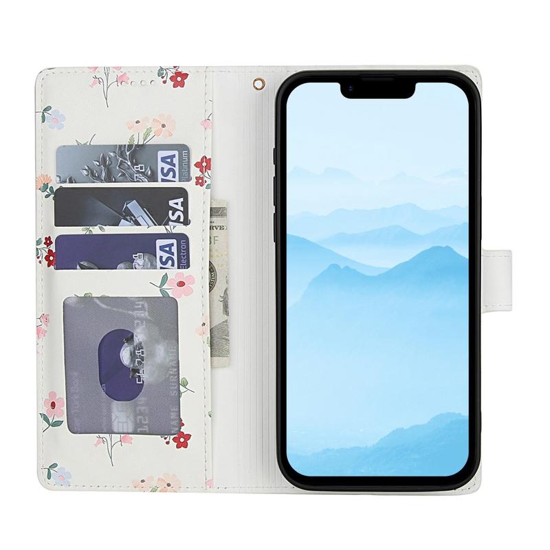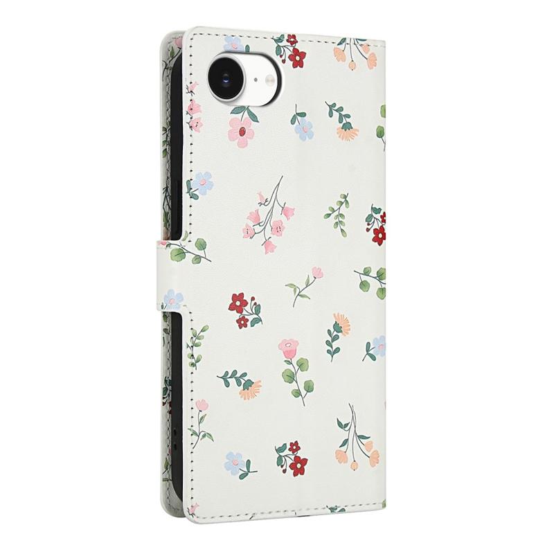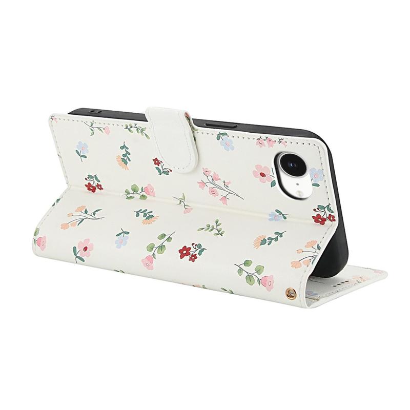 Rombinen kukkakuvioinen lompakkokotelo - iPhone 16e, iPhone 17e - hihnalla ja korttipaikat