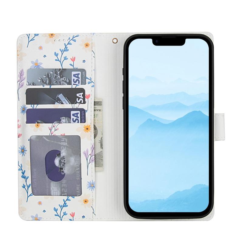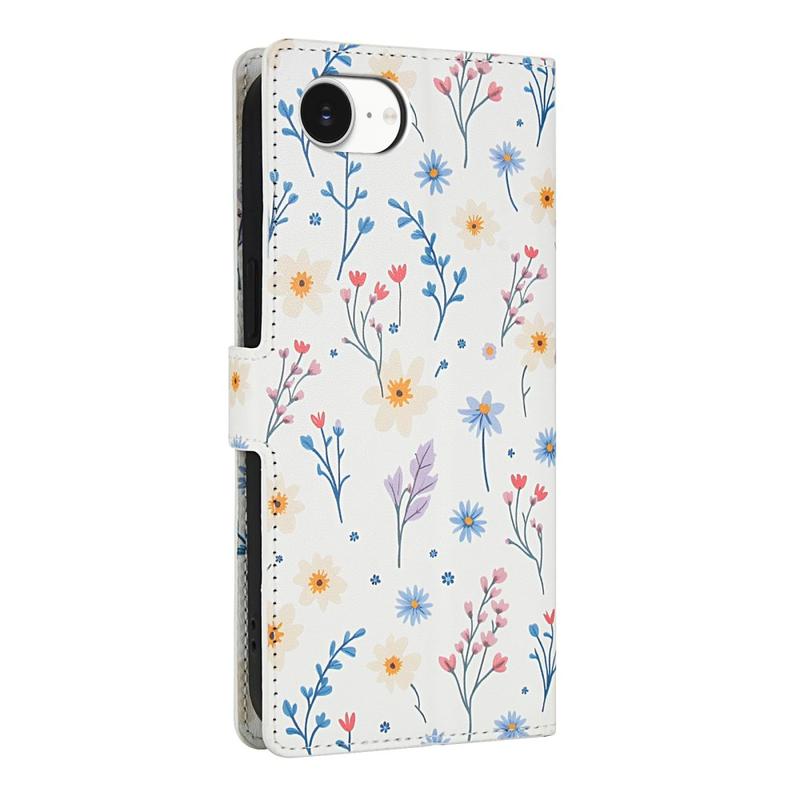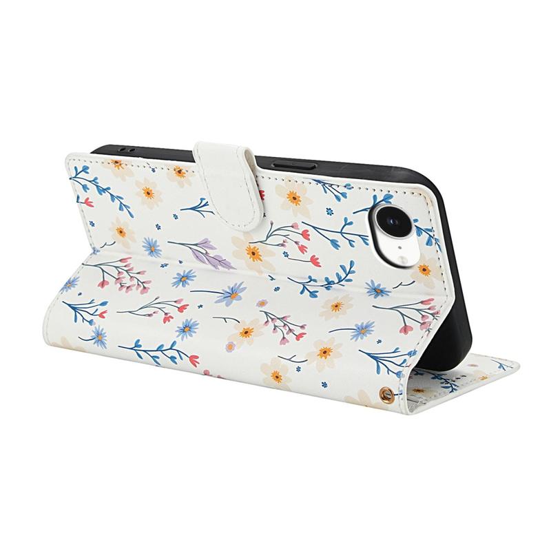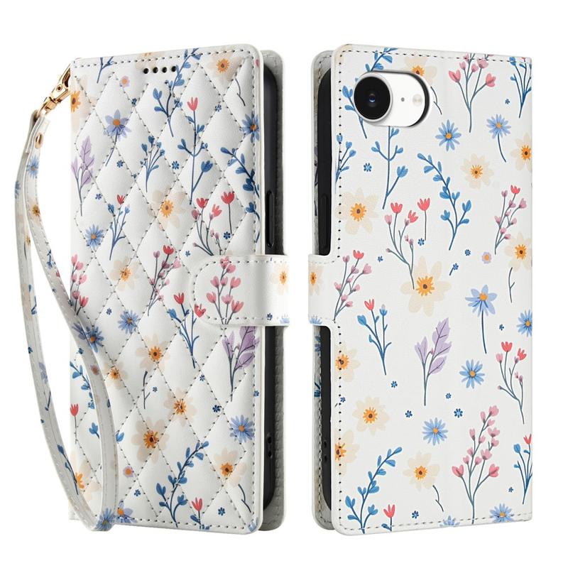 Rombinen kukkakuvioinen lompakkokotelo - iPhone 16e - hihnalla ja korttipaikat