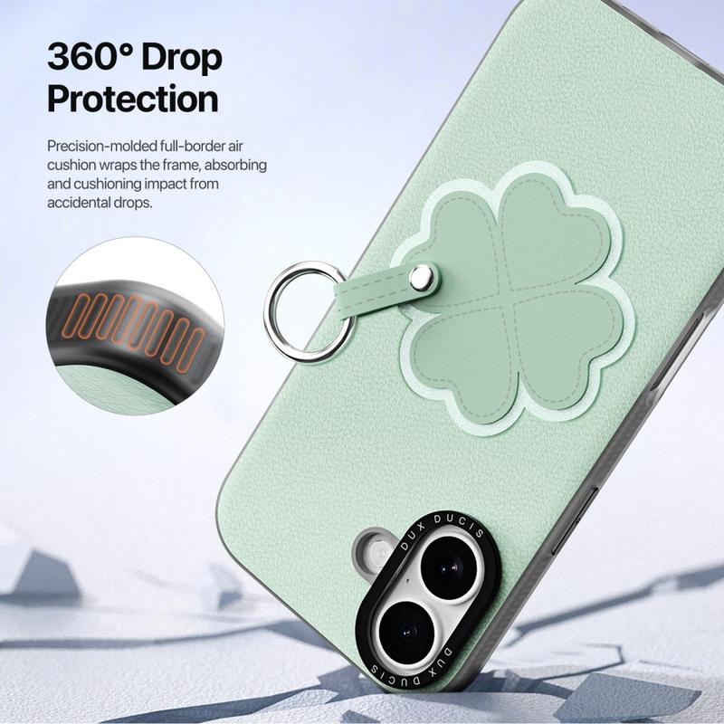 Integroitu metallinen sormirengas pyörii vapaasti 360°, mikä mahdollistaa turvallisen yhden käden käytön. Se parantaa otteen vakautta, vähentää tahattomien pudotusten riskiä ja voi toimia myös kätevänä jalustana handsfree-katseluun.