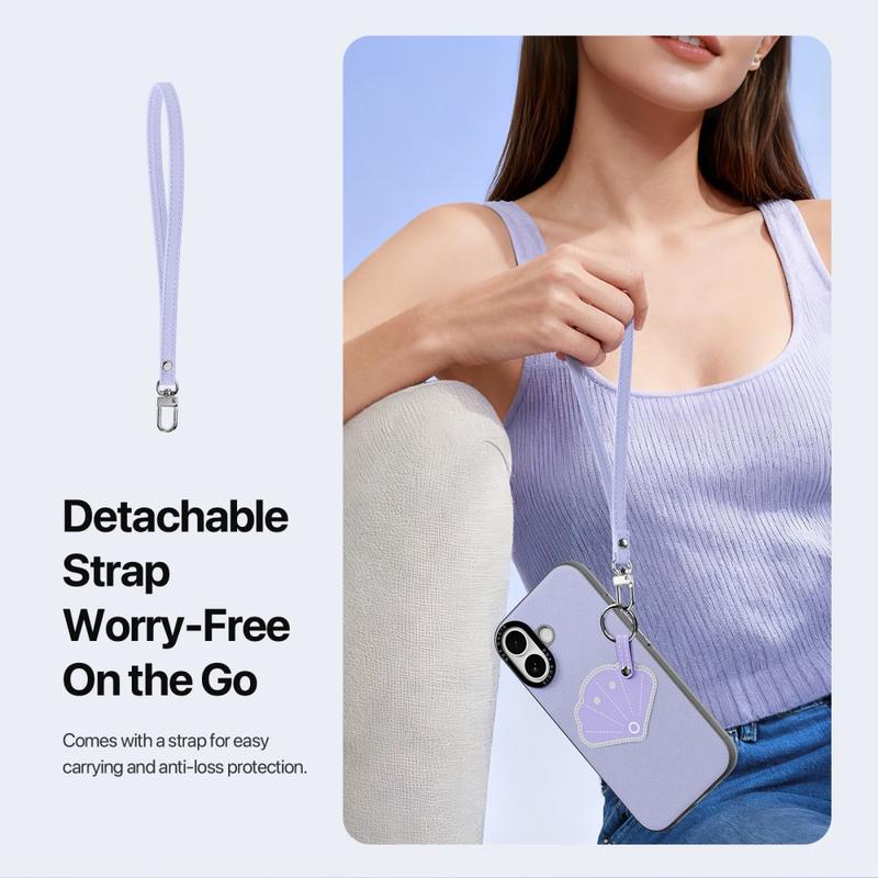 Mukana on irrotettava hihna, joka helpottaa kantamista matkoilla, työmatkoilla tai päivittäisissä toiminnoissa. Se tarjoaa lisäturvaa katoamisen varalta ja antaa samalla iPhone 17 -puhelimellesi muodikkaan lisävarusteen kosketuksen.