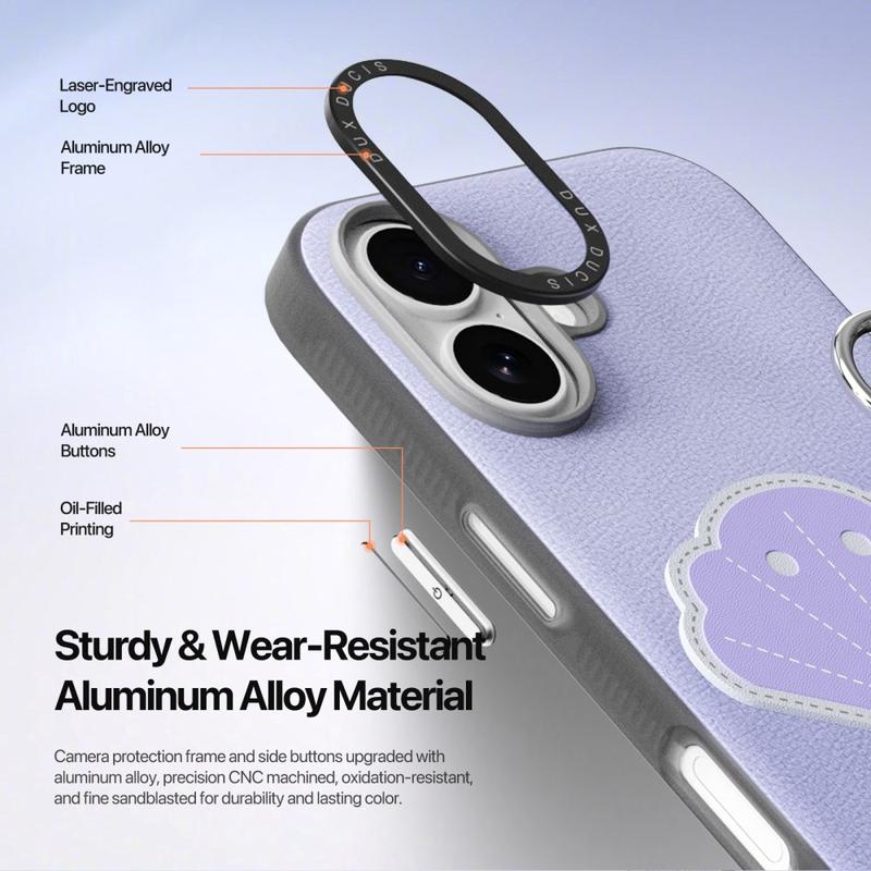 Integroitu metallinen sormirengas pyörii vapaasti 360°, mikä mahdollistaa turvallisen yhden käden käytön. Se parantaa otteen vakautta, vähentää tahattomien pudotusten riskiä ja voi toimia myös kätevänä jalustana handsfree-katseluun.