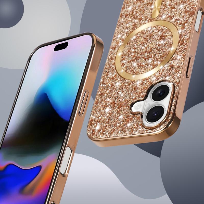 Tässä kotelossa ei ole kyse vain ulkonäöstä - siinä yhdistyvät glamour ja käytännöllisyys. Galvanoitu glitter-muotoilu lisää ainutlaatuista kiiltoa, ja kestävät kaksikerroksiset materiaalit tarjoavat luotettavan suojan. MagSafe-yhteensopivuuden ansiosta se on yhtä toimiva kuin tyylikäs.