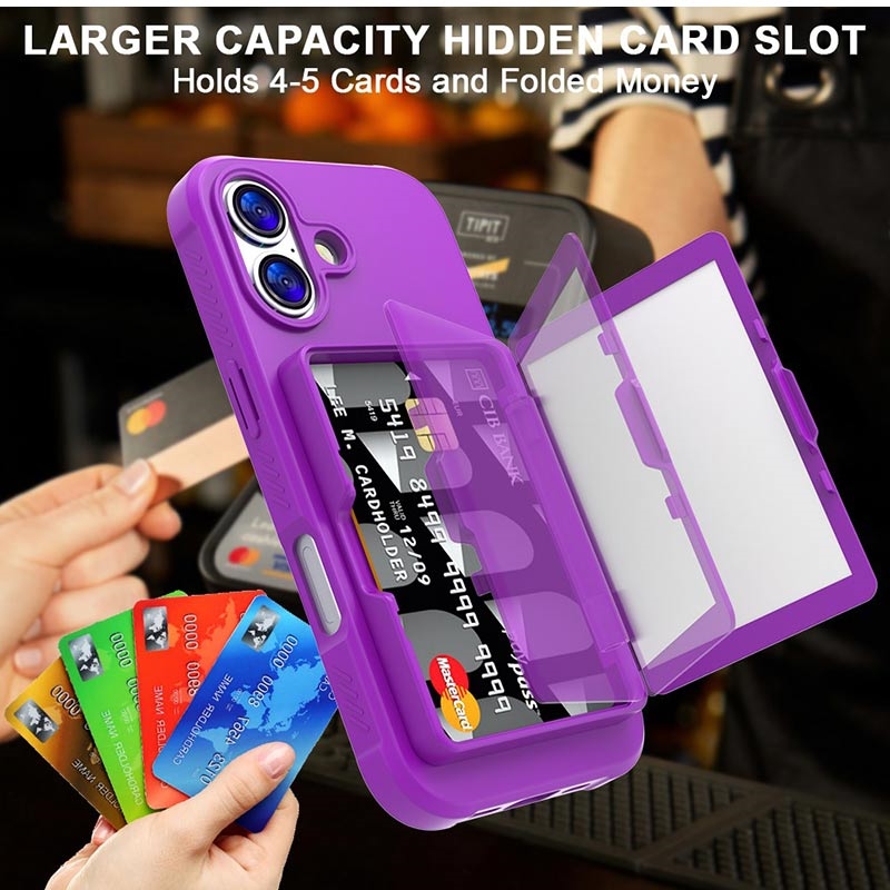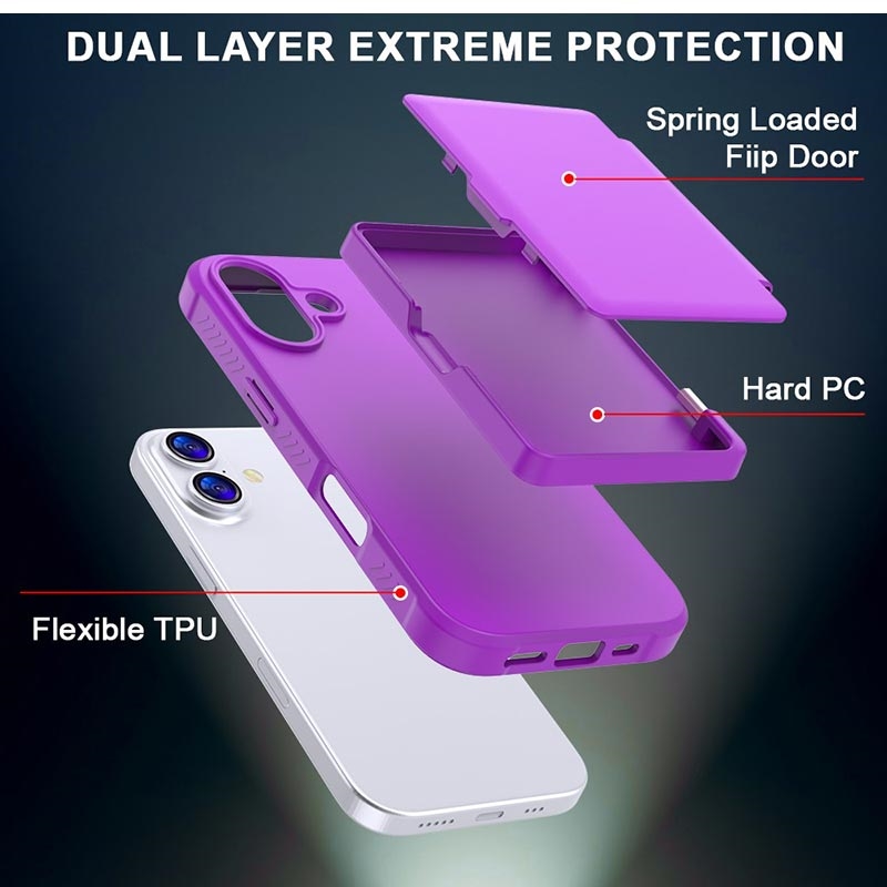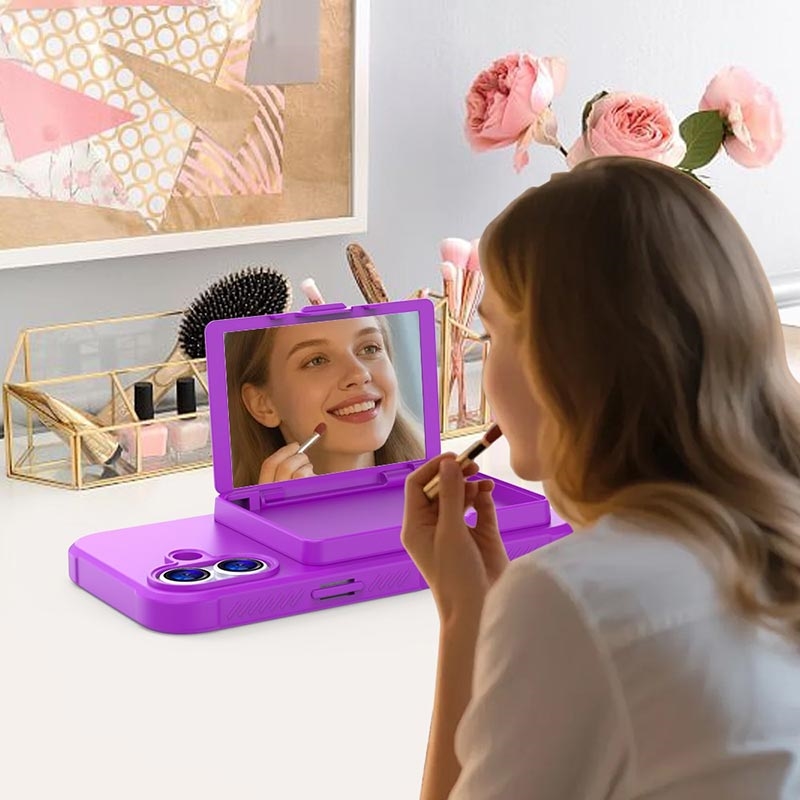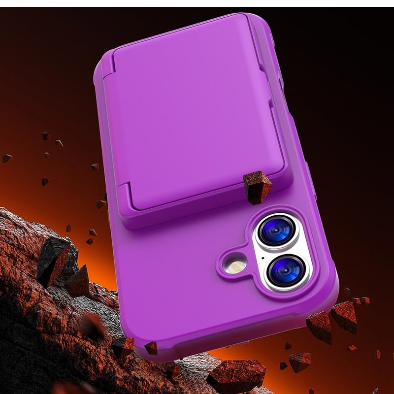 iPhone 17 Hybridikotelo - Piilotettu Peili ja Korttipaikka - Purppura
