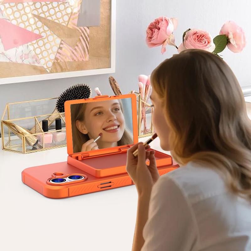 iPhone 17 Hybridikotelo - Piilotettu Peili ja Korttipaikka - Oranssi