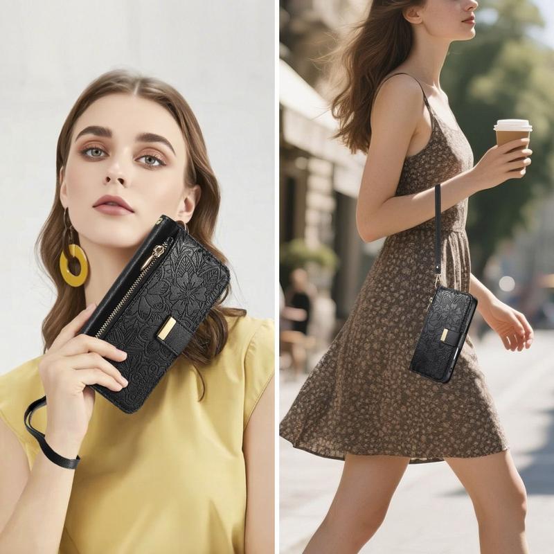 Toisin kuin tavallisissa iPhone 17 -koteloissa, tässä all-in-one-lompakkosuojakotelossa yhdistyvät suojaus, organisointi ja tyylikkyys. Kukkapainatus antaa sille tyylikkään särmän, kun taas vetoketjullinen tasku ja rannehihna tarjoavat vertaansa vailla olevaa mukavuutta jokapäiväiseen elämään ja matkustamiseen.
