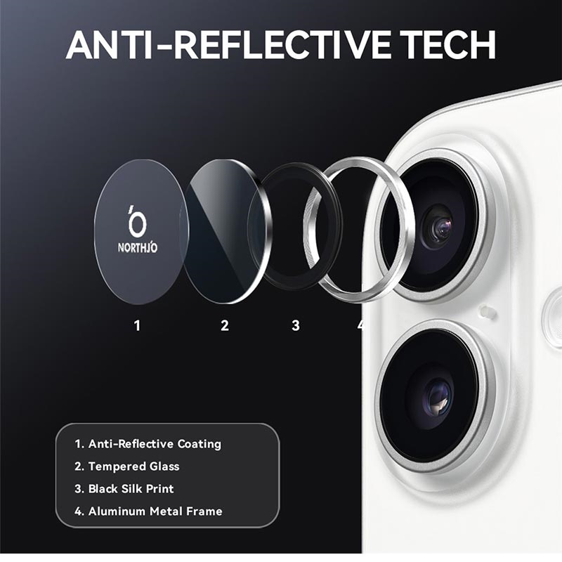 Päivitä iPhone 17 -puhelimesi Northjo-kameran linssisuojalla. CD-lasin alumiinirenkaalla varustettu suoja tuo iPhone 17 -puhelimeesi tyylikkään ja modernin ilmeen ja tarjoaa samalla vankan suojan. 9H-karkaistu lasi suojaa naarmuilta, iskuilta ja pölyltä varmistaen, että kameran linssi pysyy kristallinkirkkaana. Helpon, työkaluttoman asennuksen ansiosta voit parantaa iPhone 17 -puhelimesi kestävyyttä ja estetiikkaa muutamassa sekunnissa.