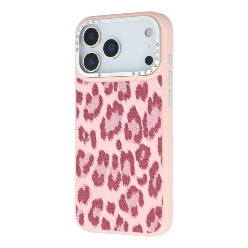 Jaucase Leopardikuvioinen magneettinen hybridikotelo - iPhone 17 Pro - PU + TPU + PC strassi linssi kehys kanssa