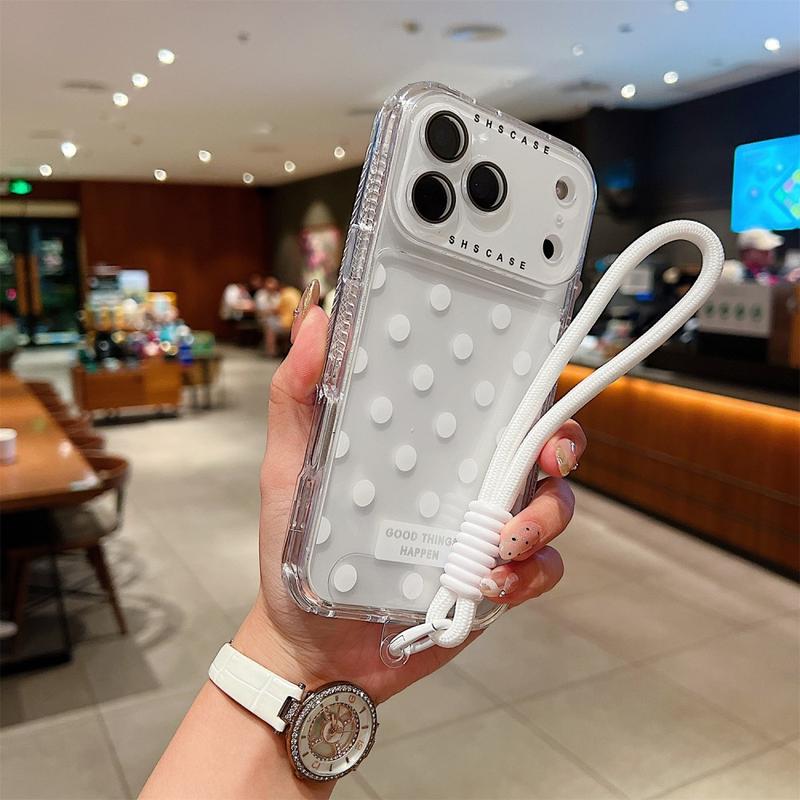 Lisää sekä charmia että suojaa iPhone 17 Pro -puhelimeesi tällä Polka Dot Hybrid Case -kotelolla. TPU:n ja PC:n sekoituksesta valmistettu suojakotelo tarjoaa kestävyyttä, joustavuutta ja päivittäistä suojaa naarmuilta ja putoamisilta. Läpinäkyvässä takakuoressa on leikkisä pilkkumuotoilu, ja siinä on karkaistua lasia oleva linssikalvo kameran suojaamiseksi. Tässä kotelossa on yhteensopiva rannehihna ja motivoiva lause "GOOD THINGS HAPPEN", joten siinä yhdistyvät tyyli, positiivisuus ja toiminnallisuus.
