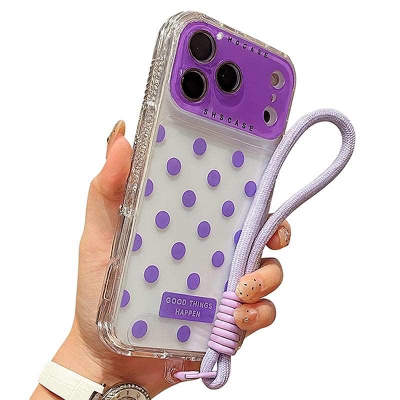 Lisää sekä charmia että suojaa iPhone 17 Pro -puhelimeesi tällä Polka Dot Hybrid Case -kotelolla. TPU:n ja PC:n sekoituksesta valmistettu suojakotelo tarjoaa kestävyyttä, joustavuutta ja päivittäistä suojaa naarmuilta ja putoamisilta. Läpinäkyvässä takakuoressa on leikkisä pilkkumuotoilu, ja siinä on karkaistua lasia oleva linssikalvo kameran suojaamiseksi. Tässä kotelossa on yhteensopiva rannehihna ja motivoiva lause "GOOD THINGS HAPPEN", joten siinä yhdistyvät tyyli, positiivisuus ja toiminnallisuus.