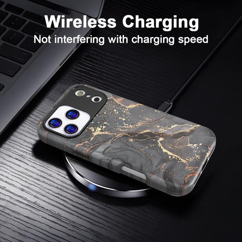 Suojaa iPhone 17 Pro -puhelimesi tyylikkäästi tällä marmoripintaisella puhelinkotelolla, joka on valmistettu korkealaatuisesta PC + TPU -materiaalista käyttäen kehittynyttä vedensiirtopainotekniikkaa. Tuloksena on kestävä mutta tyylikäs kotelo, jossa on sileä, huomiota herättävä viimeistely.