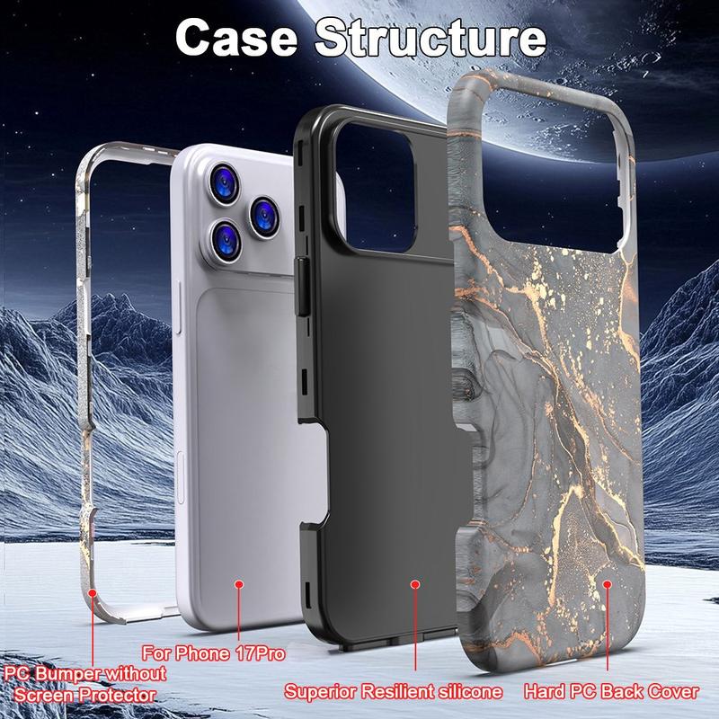Ylellinen marmorinen hybridikotelo - iPhone 17 Pro - Tyylikäs PC ja TPU Iskunkestävä puhelimen suojus kameran suojaus