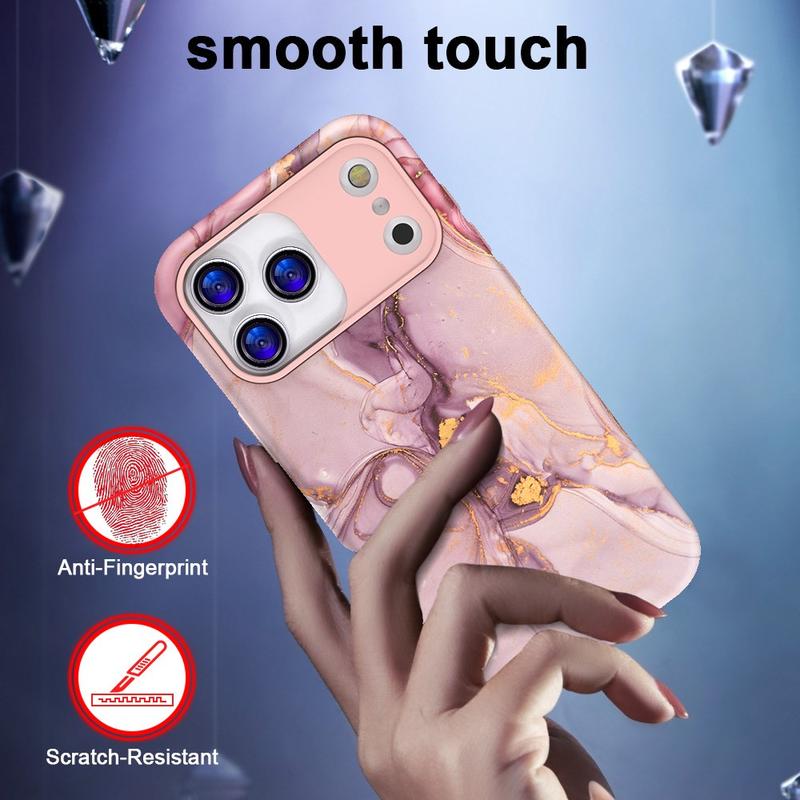 Suojaa iPhone 17 Pro -puhelimesi tyylikkäästi tällä marmoripintaisella puhelinkotelolla, joka on valmistettu korkealaatuisesta PC + TPU -materiaalista käyttäen kehittynyttä vedensiirtopainotekniikkaa. Tuloksena on kestävä mutta tyylikäs kotelo, jossa on sileä, huomiota herättävä viimeistely.