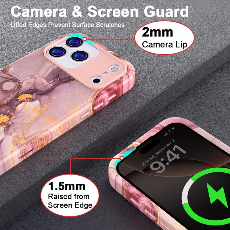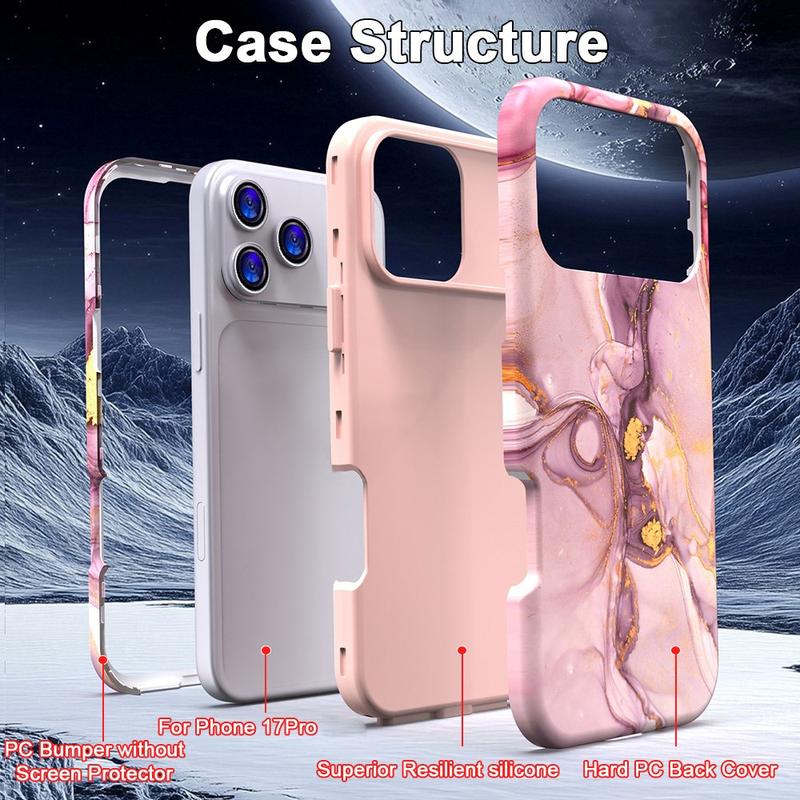 Ylellinen marmorinen hybridikotelo - iPhone 17 Pro - Tyylikäs PC ja TPU Iskunkestävä puhelimen suojus kameran suojaus