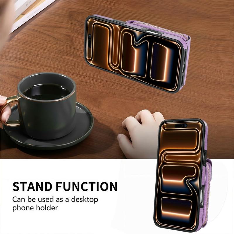 Kuljeta puhelinta, kortteja ja käteistä yhdessä tyylikkäässä lisävarusteessa tässä iPhone 17 Pro Maxin vetoketjullisessa lompakkokotelossa. Se on valmistettu kestävästä TPU:sta, joka on päällystetty ensiluokkaisella polyuretaaninahalla, ja se tarjoaa jokapäiväistä suojaa korvaten samalla erillisen lompakon tarpeen. Täydellinen niille, jotka haluavat tyyliä, mukavuutta ja turvallisuutta yhdessä.