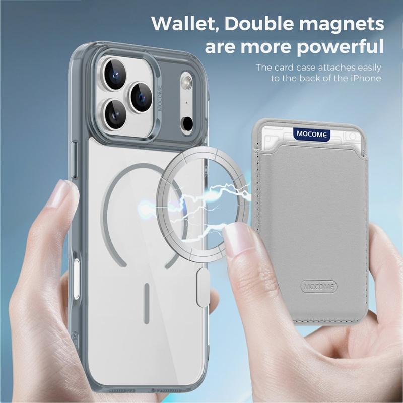 Tämä iPhone 17 Pro Max -kotelo tarjoaa 360°:n suojan ja modernin mukavuuden. Irrotettavan magneettikorttipidikkeen ansiosta se sopii niille, jotka haluavat matkustaa kevyesti, ja MagSafe-yhteensopivuus takaa vaivattoman langattoman latauksen. Sen ohuen, kristallinkirkkaan muotoilun ansiosta voit esitellä iPhone 17 Pro Max -puhelintasi ja pitää sen samalla suojattuna.