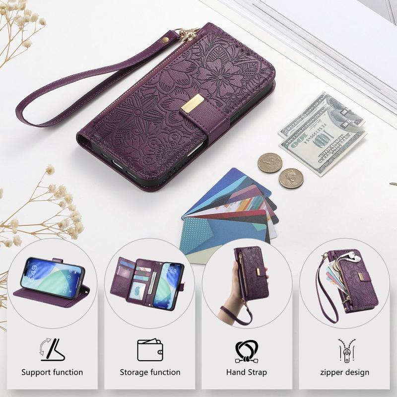 Toisin kuin tavallisissa iPhone 17 Pro -koteloissa, tässä all-in-one-lompakkosuojakotelossa yhdistyvät suojaus, organisointi ja tyylikkyys. Kukkapainatus antaa sille tyylikkään särmän, kun taas vetoketjullinen tasku ja rannehihna tarjoavat vertaansa vailla olevaa mukavuutta jokapäiväiseen elämään ja matkustamiseen.