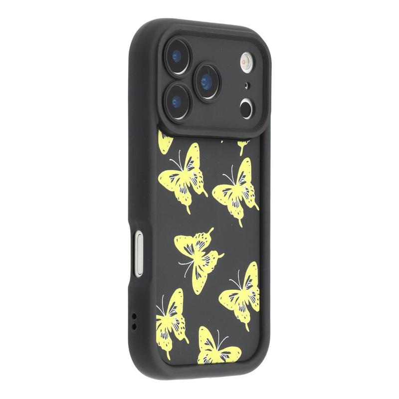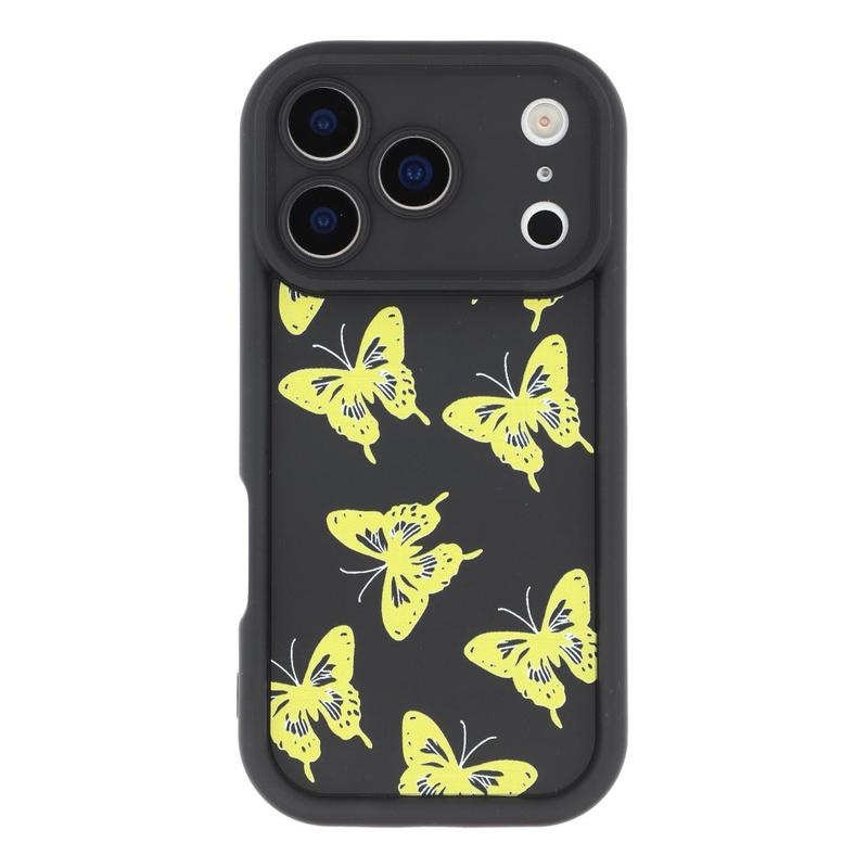 iPhone 17 Pro Max Perhoskuvioinen TPU-kotelo - Keltainen / Musta