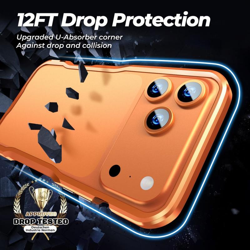 Luphie iPhone 17 Pro 6,7 tuuman pudotuksenkestävälle metallirunkoiselle törmäyksenkestävälle puhelimen puskurille