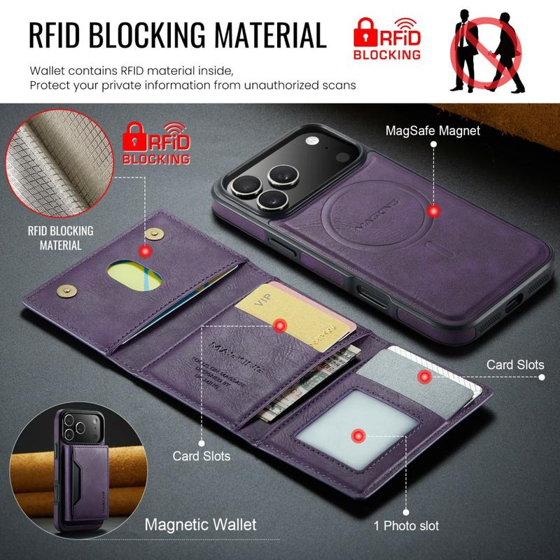 MagKing K2-sarjan kotelo - iPhone 17 Pro - MagSafe-yhteensopiva jalusta tapauksessa irrotettava RFID-lompakko