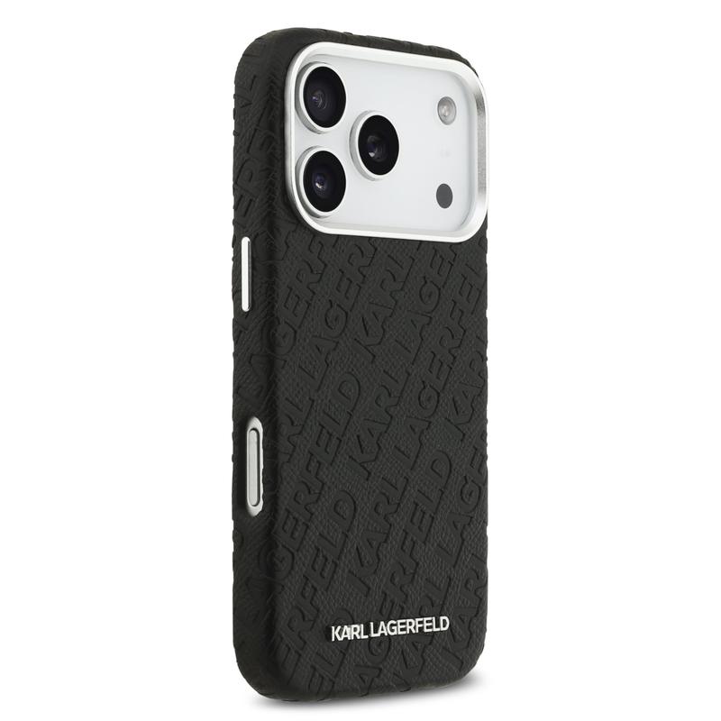 Karl Lagerfeld Grained Repeated Logo MagSafe Kotelo - iPhone 17 Pro - Ensiluokkainen polyuretaanista valmistettu takakansi