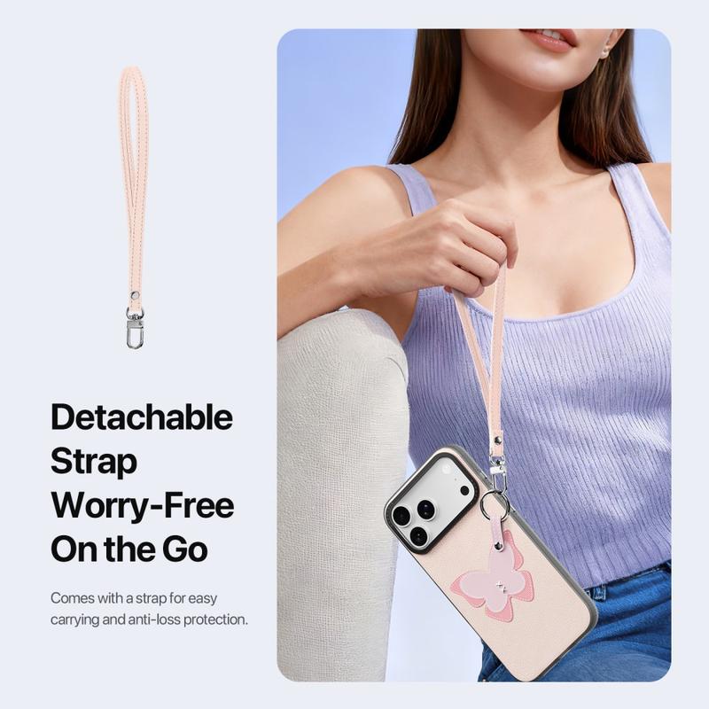 Mukana on irrotettava hihna, joka helpottaa kantamista matkoilla, työmatkoilla tai päivittäisissä toiminnoissa. Se tarjoaa lisäturvaa katoamisen varalta ja antaa samalla iPhone 17 Pro -puhelimellesi muodikkaan lisävarusteen kosketuksen.