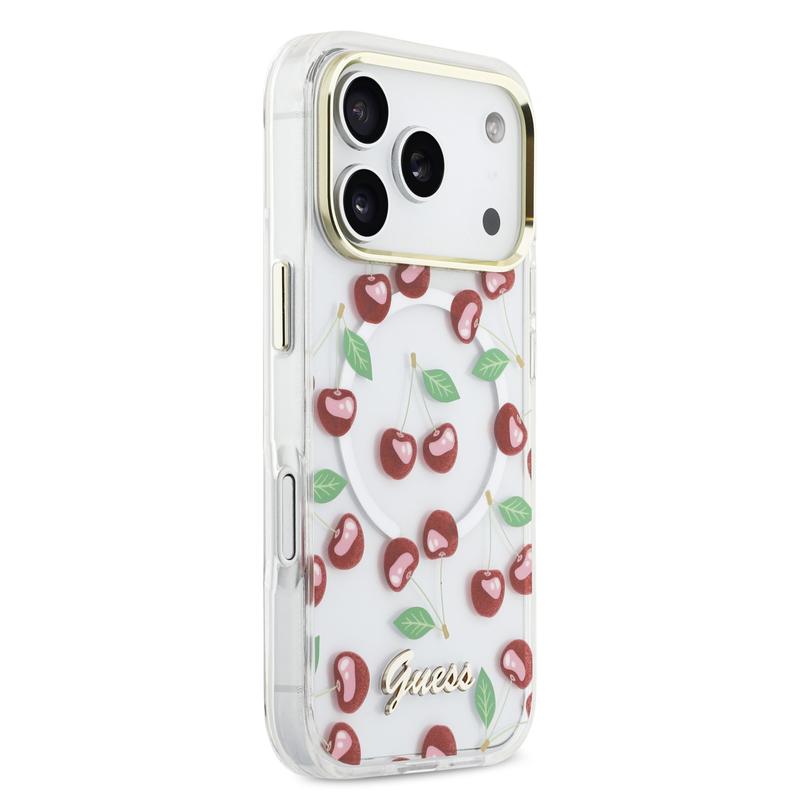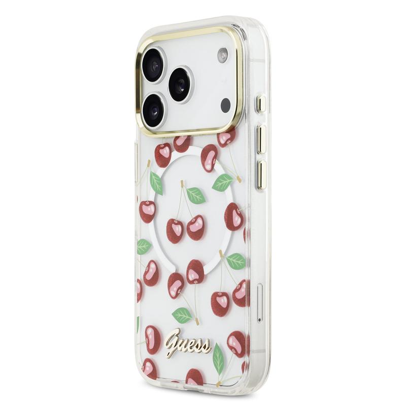 Guess IML Glitter Cherry MagSafe Hybrid -kotelo iPhone 17 Pro - PC- ja TPU-suojakansi