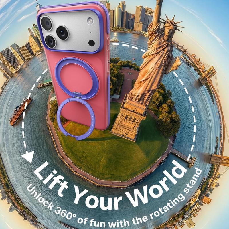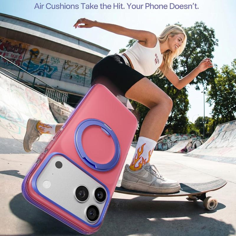 Tämä kotelo on loistava valinta käyttäjille, jotka haluavat enemmän kuin pelkkän suojakotelon. Se yhdistää vahvan magneettisen yhteensopivuuden, sisäänrakennetun säädettävän tukijalan ja vahvistetun monimateriaalisen suojan yhdessä mallissa. Korotetut reunat ja kaksikerroksinen rakenne auttavat suojaamaan laitetta päivittäisessä käytössä, kun taas värilohkoinen viimeistely antaa iPhone 17 Pro Maxille entistä huomiota herättävämmän ja modernimman ilmeen. Se sopii erityisen hyvin käyttäjille, jotka käyttävät säännöllisesti magneettisia lisävarusteita ja haluavat myös kätevän telineen päivittäiseen katseluun.
