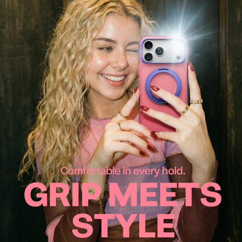 Tämä kotelo on loistava valinta käyttäjille, jotka haluavat enemmän kuin pelkkän suojakotelon. Se yhdistää vahvan magneettisen yhteensopivuuden, sisäänrakennetun säädettävän tukijalan ja vahvistetun monimateriaalisen suojan yhdessä mallissa. Korotetut reunat ja kaksikerroksinen rakenne auttavat suojaamaan laitetta päivittäisessä käytössä, kun taas värilohkoinen viimeistely antaa iPhone 17 Pro Maxille entistä huomiota herättävämmän ja modernimman ilmeen. Se sopii erityisen hyvin käyttäjille, jotka käyttävät säännöllisesti magneettisia lisävarusteita ja haluavat myös kätevän telineen päivittäiseen katseluun.