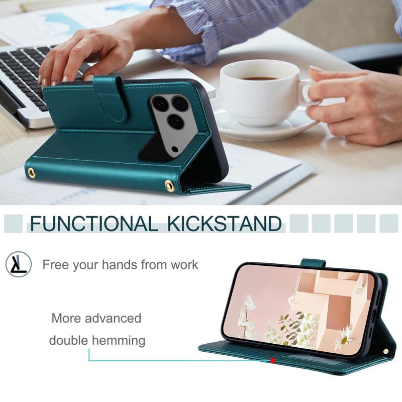 Suojaa iPhone 17 Pro -puhelimesi tällä ylellisellä tikatulla lompakkokotelolla. TPU-materiaalista ja PU-nahasta valmistettu kotelo on naarmuuntumaton ja sormenjälkiä hylkivä, pitäen puhelimesi tyylikkäänä ja virtaviivaisena. Tikkaukset muodostavat vinoneliön muotoisen ruudukon, joka lisää koteloon muodikkaan ja kauniin ilmeen. Kameran ja näytön kohotettu reuna tarjoaa tehokkaan suojan naarmuilta, ja tarkat leikkaukset mahdollistavat täyden pääsyn kaikkiin painikkeisiin, portteihin ja muihin ominaisuuksiin. Lompakkomuotoilu mahdollistaa tärkeiden korttien ja käteisen helpon säilyttämisen. Lisäsuojana naarmuja, iskuja, pudotuksia ja päivittäisiä vaurioita vastaan tässä kotelossa on myös olkahihna ja rannehihna lisämukavuutta varten.