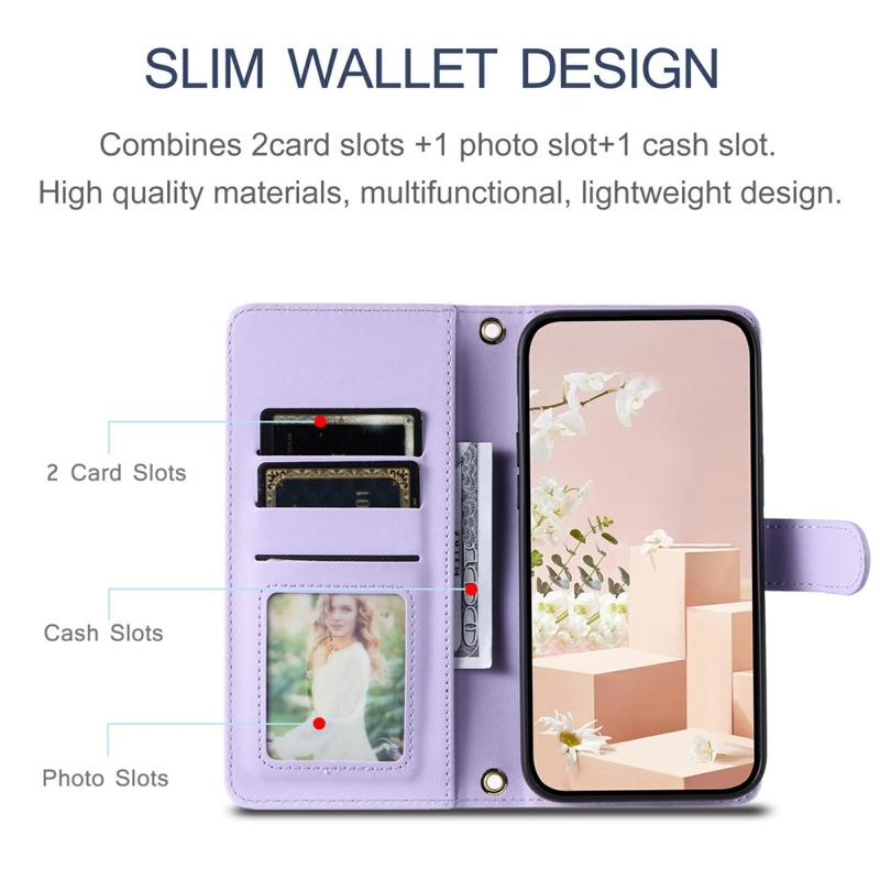 Suojaa iPhone 17 Pro Max -puhelimesi tällä ylellisellä tikatulla lompakkokotelolla. TPU-materiaalista ja PU-nahasta valmistettu kotelo on naarmuuntumaton ja sormenjälkiä hylkivä, pitäen puhelimesi tyylikkäänä ja virtaviivaisena. Tikkaukset muodostavat vinoneliön muotoisen ruudukon, joka lisää koteloon muodikkaan ja kauniin ilmeen. Kameran ja näytön kohotettu reuna tarjoaa tehokkaan suojan naarmuilta, ja tarkat leikkaukset mahdollistavat täyden pääsyn kaikkiin painikkeisiin, portteihin ja muihin ominaisuuksiin. Lompakkomuotoilu mahdollistaa tärkeiden korttien ja käteisen helpon säilyttämisen. Lisäsuojana naarmuja, iskuja, pudotuksia ja päivittäisiä vaurioita vastaan tässä kotelossa on myös olkahihna ja rannehihna lisämukavuutta varten.