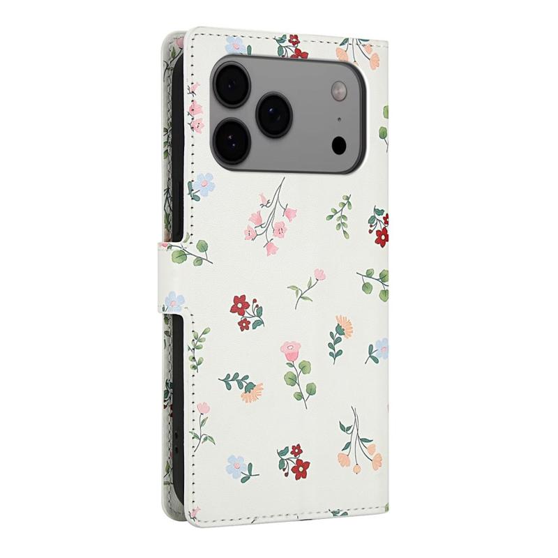 Rombinen kukkakuvioinen lompakkokotelo - iPhone 17 Pro Max - hihnalla ja korttipaikat