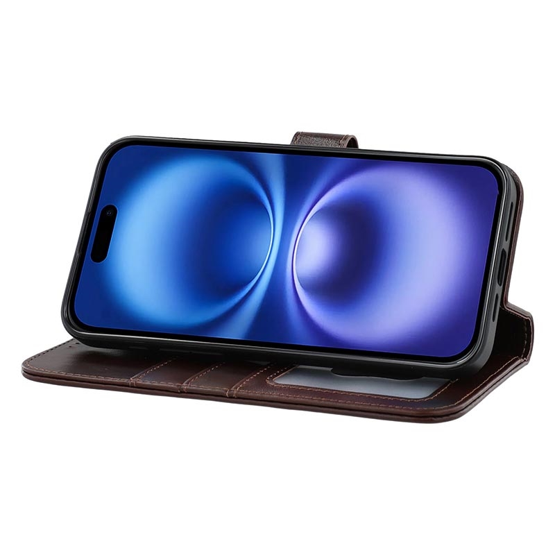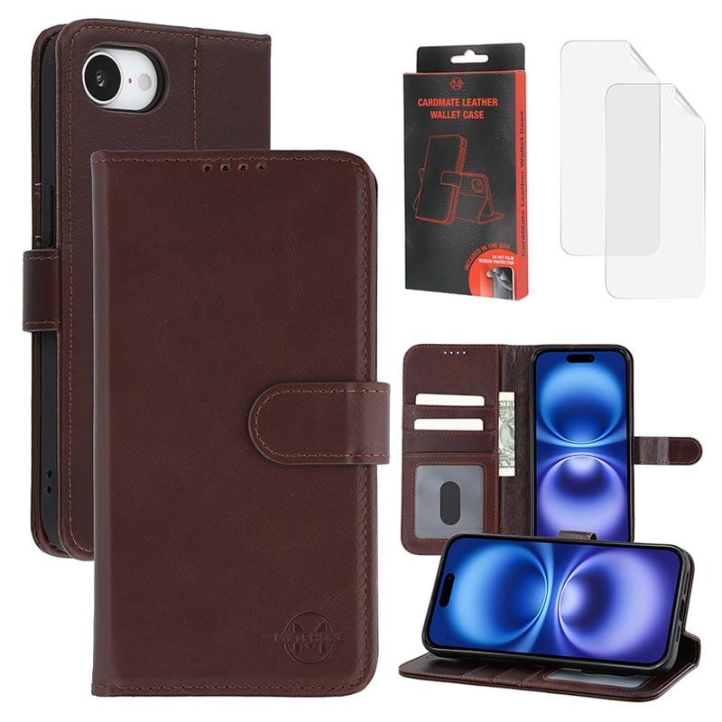 MyTPhone CardMate Premium Nahka lompakkokotelo iPhone 17e:lle - jalustaominaisuus, korttipidike, langattoman latauksen tuki, 2x näytönsuojaus