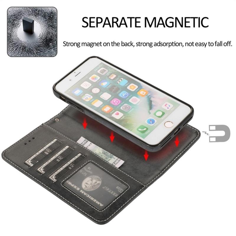 Retro 2-in-1-lompakkokotelo irrotettavalla magneettikannella iPhone 7 Plus, iPhone 8 Plus:lle