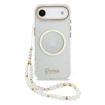 Guess IML Glitter Script MagSafe Hihnakotelo iPhone Airille - kimalteleva takakansi rannehihnalla, PC+TPU-suojaus, MagSafe-yhteensopiva