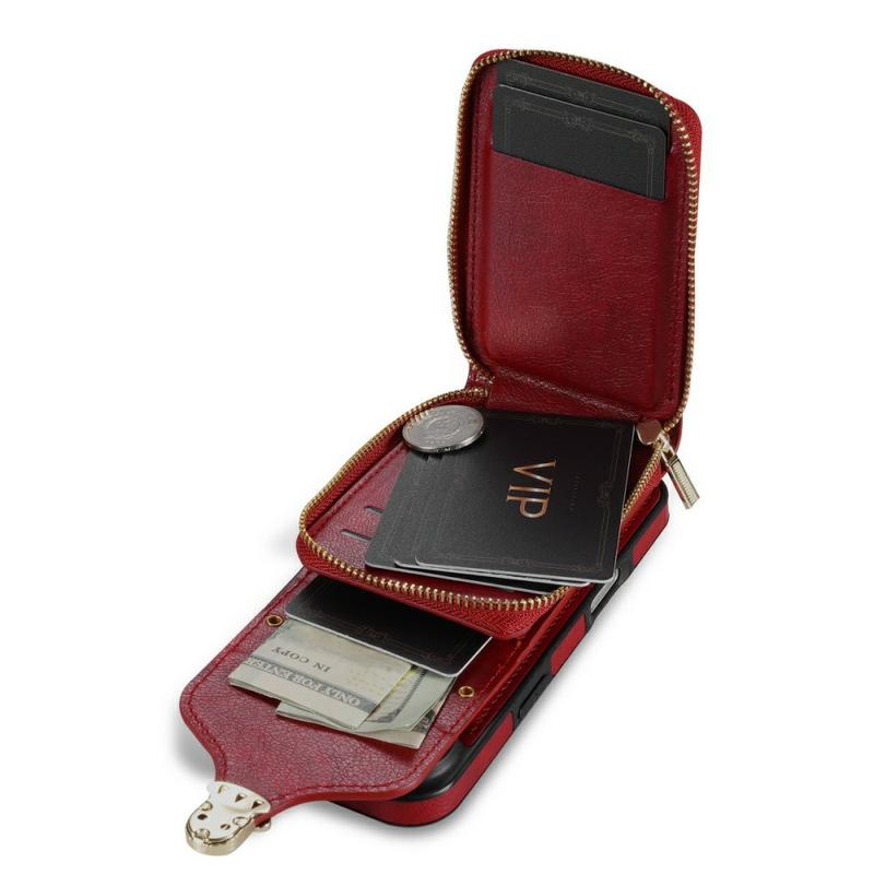 - Turvallinen vetoketjullinen lompakko - laitteistosolki ja vetoketju pitävät kortit, käteisen ja pienet esineet turvassa.