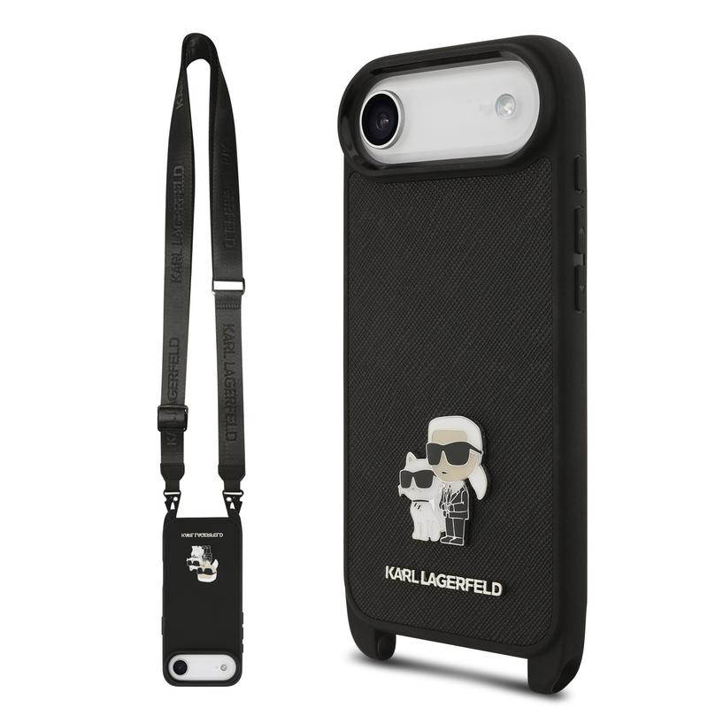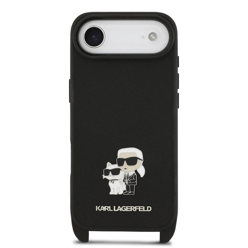 iPhone Air Karl Lagerfeld Saffiano Crossbody Metal Karl & Choupette Cover - Musta tarjoaa tuotteen, joka on yhtä toimiva kuin tyylikäs. Suojaa iPhone Air -puhelintasi tällä elegantilla suojakuorella ja nauti sekä turvallisuuden että muodin eduista.