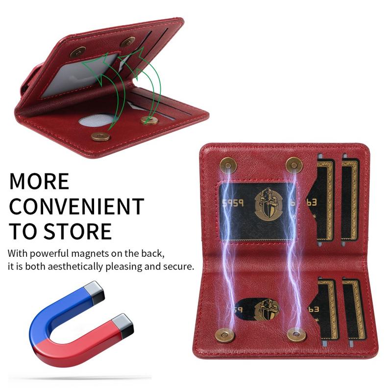 Tämä lompakko tarjoaa toiminnallisuutta, turvallisuutta ja tyyliä yhdessä kompaktissa lisävarusteessa. Vahvan magneettikiinnityksen, RFID-suojan ja sisäänrakennetun jalustan ansiosta se yksinkertaistaa päivittäistä kantamista ja parantaa samalla puhelimen käytettävyyttä.