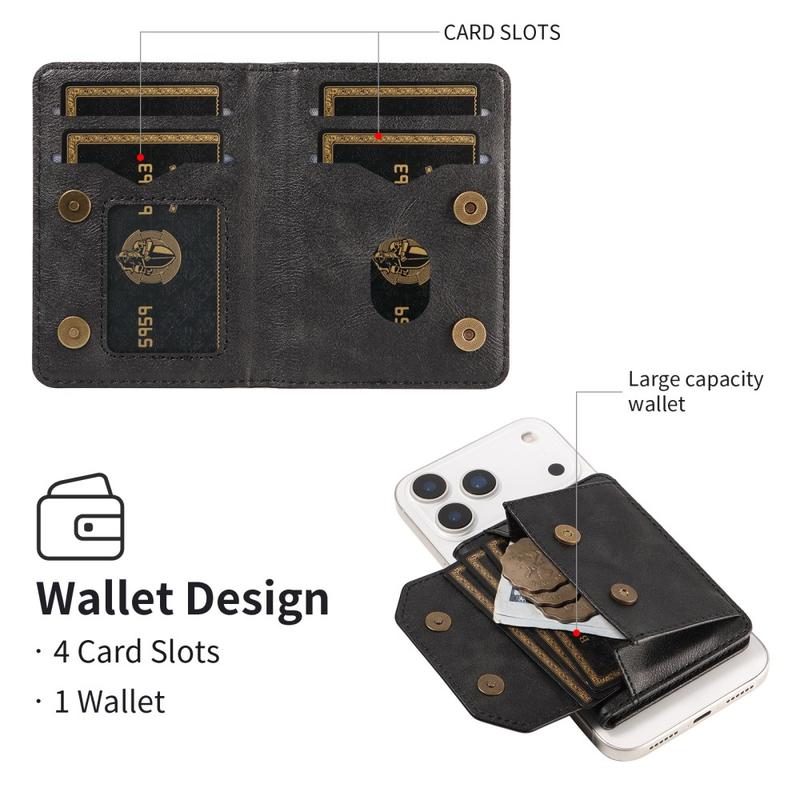 Tämä lompakko tarjoaa toiminnallisuutta, turvallisuutta ja tyyliä yhdessä kompaktissa lisävarusteessa. Vahvan magneettikiinnityksen, RFID-suojan ja sisäänrakennetun jalustan ansiosta se yksinkertaistaa päivittäistä kantamista ja parantaa samalla puhelimen käytettävyyttä.