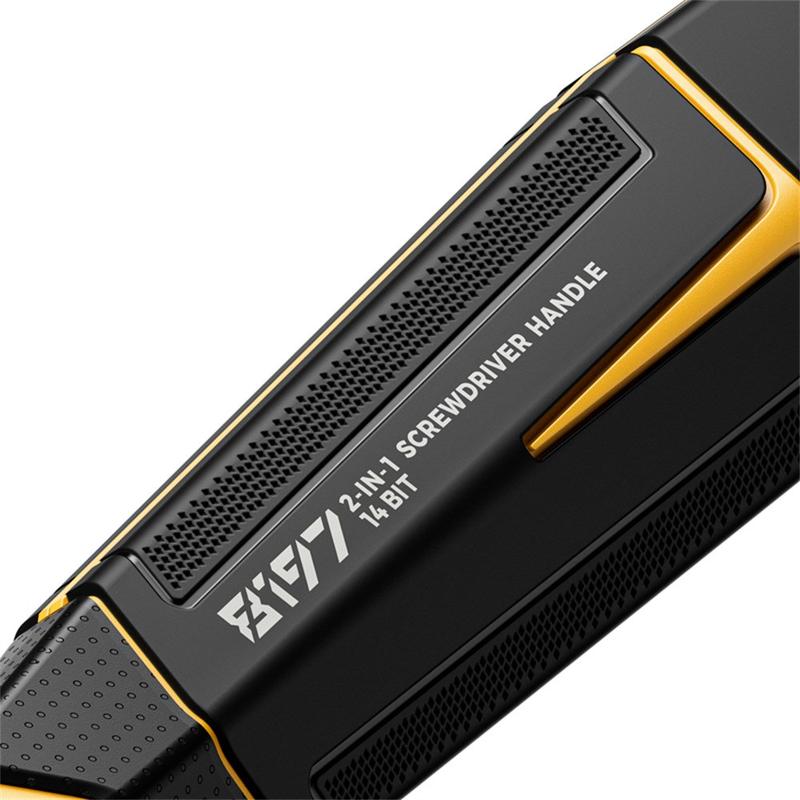- Korkean kovuuden bitit - 14 tarkkuusbittiä, joiden kovuus on 50-54HRC, mikä takaa pitkäaikaisen kestävyyden ja ruuvien suojauksen.