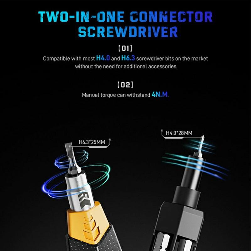 - 2-in-1-ruuvinväännin - Kaksitoiminen liitin, joka on yhteensopiva H4.0- ja H6.3-bittien kanssa ilman sovittimia.