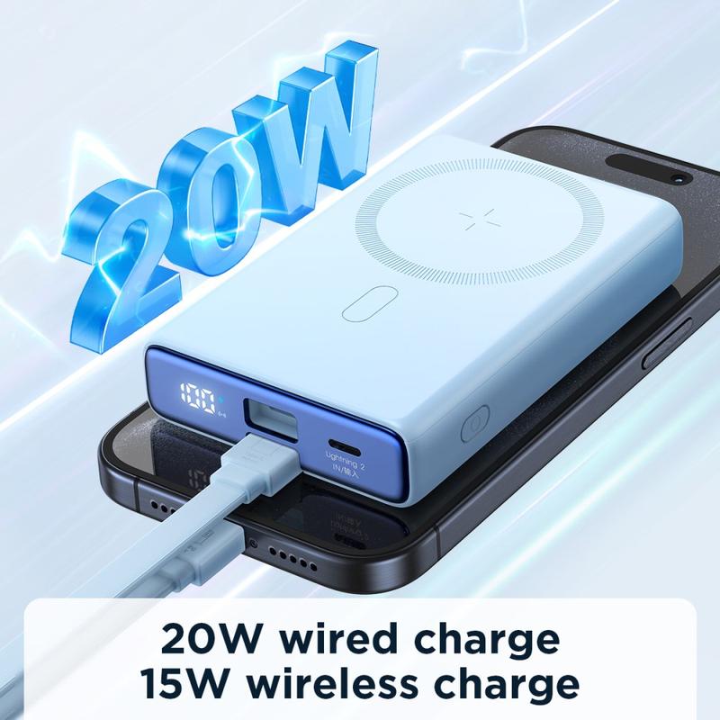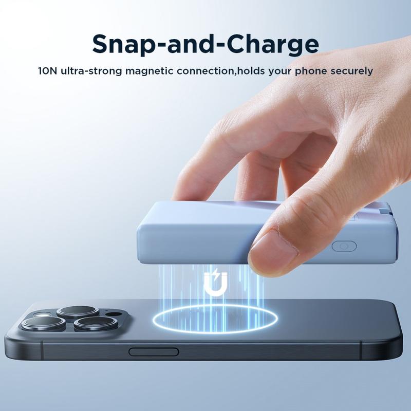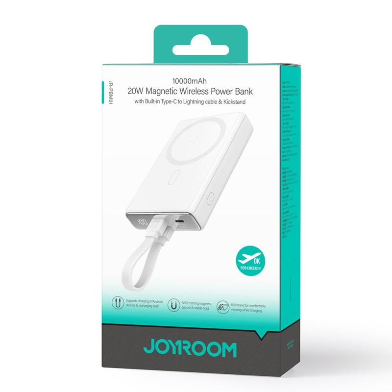 JOYROOM JR-PBM01 PD 20W 10000mAh Puhelin Power Bank Magneettinen langaton laturi sisäänrakennetulla kaapelilla / potkulaite - Valkoinen