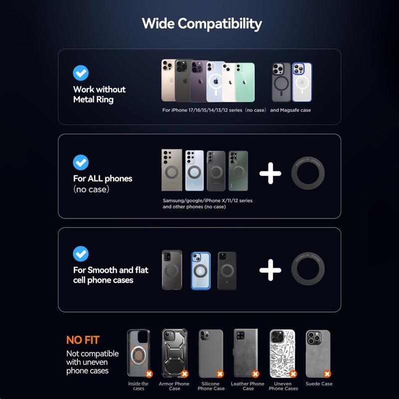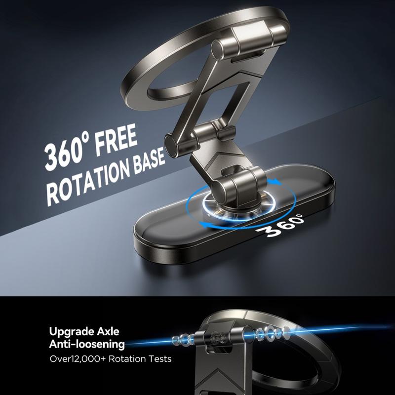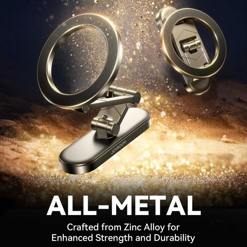 JOYROOM JR-ZS520 MagSafe -puhelintelineessä yhdistyvät ensiluokkaiset materiaalit ja erittäin joustava muotoilu, jotka tarjoavat vakaan, kädet vapaan katselukokemuksen missä tahansa ympäristössä. Kestävästä sinkkiseoksesta valmistettu jalusta tarjoaa vankan, laadukkaan tuntuman ja takaa samalla pitkäaikaisen luotettavuuden. Sen kaksipuolinen magneettikiinnitys on täysin yhteensopiva Magsafe-järjestelmän kanssa, mikä mahdollistaa vaivattoman kiinnityksen ja irrotuksen yhdellä kädellä. 360°:n kääntyvyyden ja 3-kertaisesti säädettävän varren ansiosta voit asettaa laitteesi ihanteelliseen kulmaan videopuheluita, harjoittelua, navigointia tai satunnaista katselua varten. Tämä kompakti jalusta tarjoaa vahvan magneettisen vakauden ja vertaansa vailla olevan monipuolisuuden, olipa kyseessä sitten koti, toimisto, kuntosali tai jopa golfkenttä.