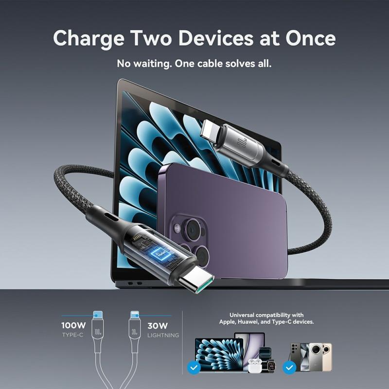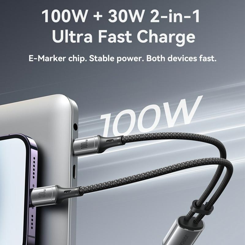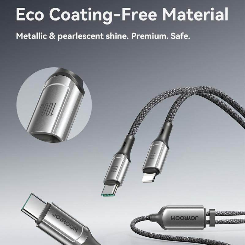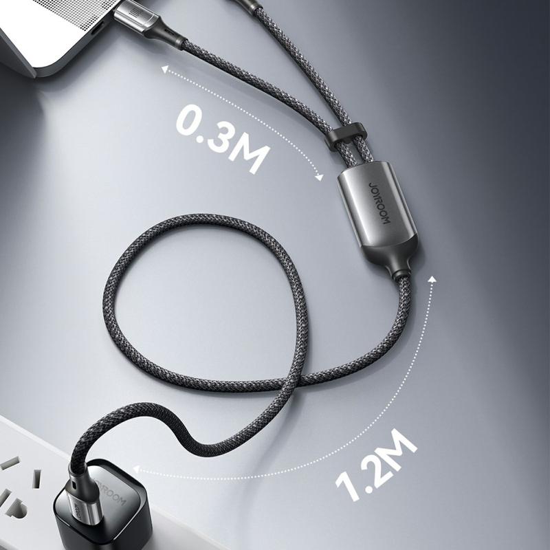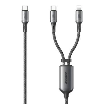 Joyroom S-A57 100W 2-in-1 latauskaapeli - USB-C USB-C + Lightning Dual Connector, 480 Mbps datasynkronointi, nailonpunos, Nylon punottu
