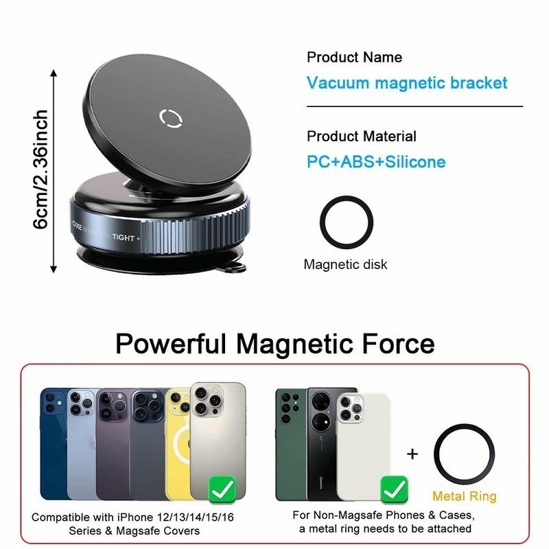 - Universaali yhteensopivuus: Täydellinen MagSafe-toiminnolla varustetulle iPhone 12-16 -sarjalle; sisältää magneettilevyn muita älypuhelinmalleja varten.