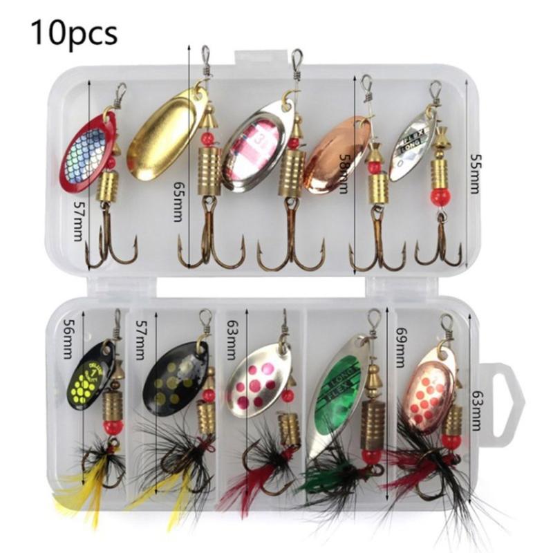 Tämä 10-osainen spinning-viehesetti tarjoaa erinomaista vastinetta, sillä siinä on valikoima tehokkaita, bionic-tyylisiä vieheitä, jotka on pakattu pieneen säilytyslaatikkoon. Pyörivät paljetit, tukevat kolminkertaiset koukut ja kestävä metallirakenne tekevät siitä luotettavan valinnan saalismenestyksen parantamiseen, ja samalla se pitää varusteesi järjestyksessä ja on helppo kuljettaa.