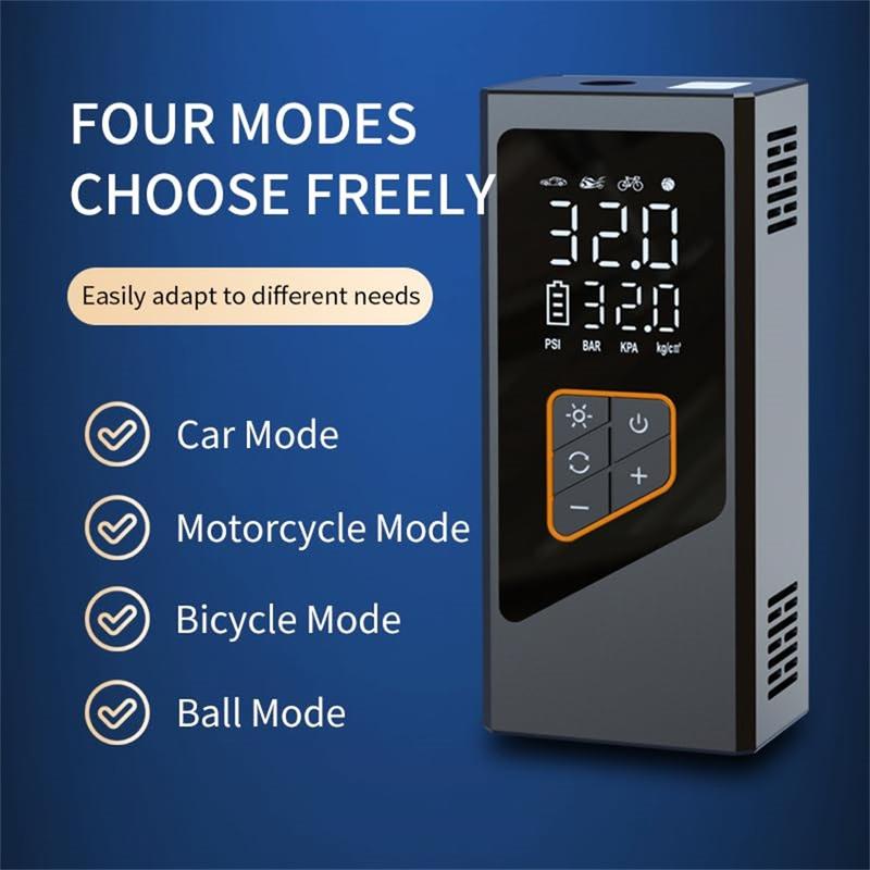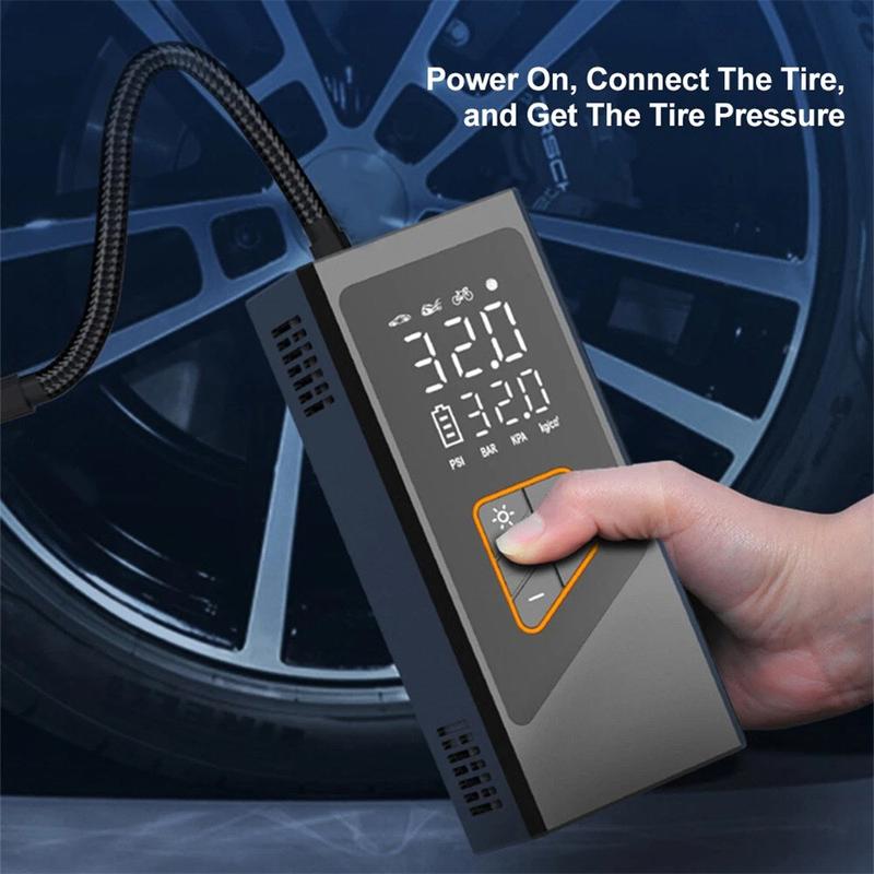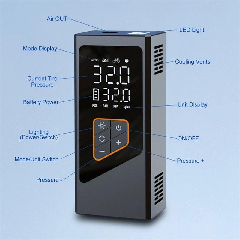 Langaton rengastäyttölaite on enemmän kuin pelkkä pumppu - se on kompakti hätätyökalu, joka täyttää renkaat nopeasti, toimii virtalähteenä ja valaisee tiesi pimeässä. Älykkään digitaalisen ohjauksen ja 6000 mAh:n akun ansiosta se on kaiken kattava matkakumppanisi.