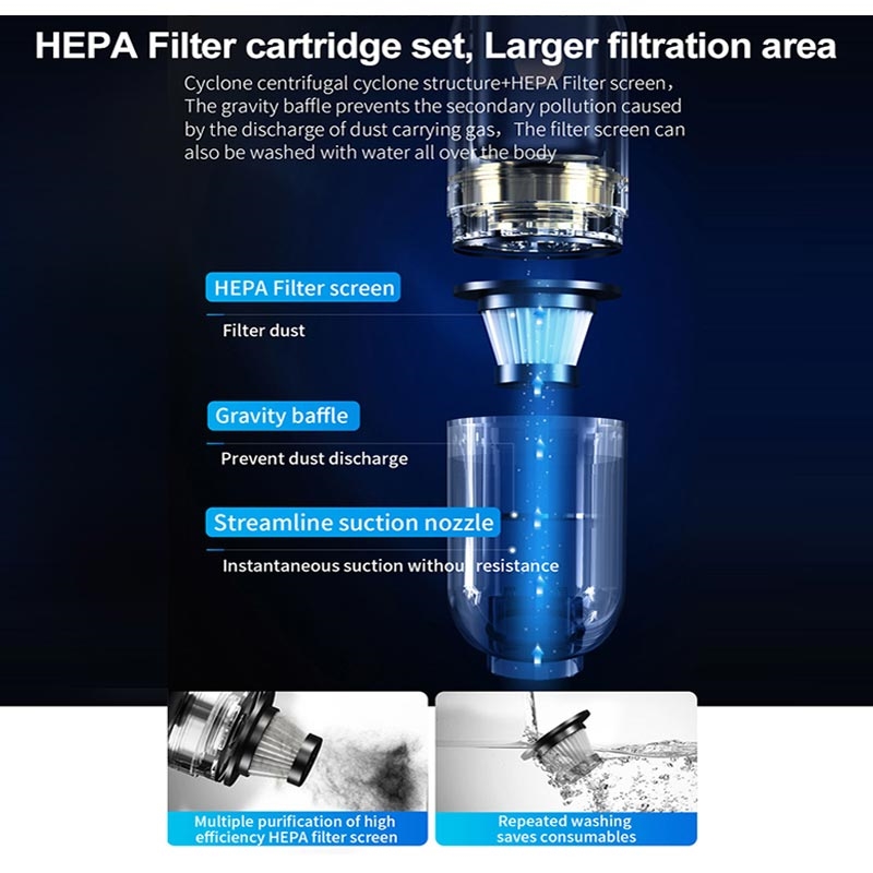 Tämä kannettava pölynimuri tarjoaa täydellisen yhdistelmän siirrettävyyttä ja puhdistustehoa. Sen johdoton muotoilu, voimakas imu ja LED-valaistus tekevät siitä sopivan sekä nopeisiin siivouksiin että syväpuhdistukseen, olipa kyseessä sitten koti, toimisto tai matka.