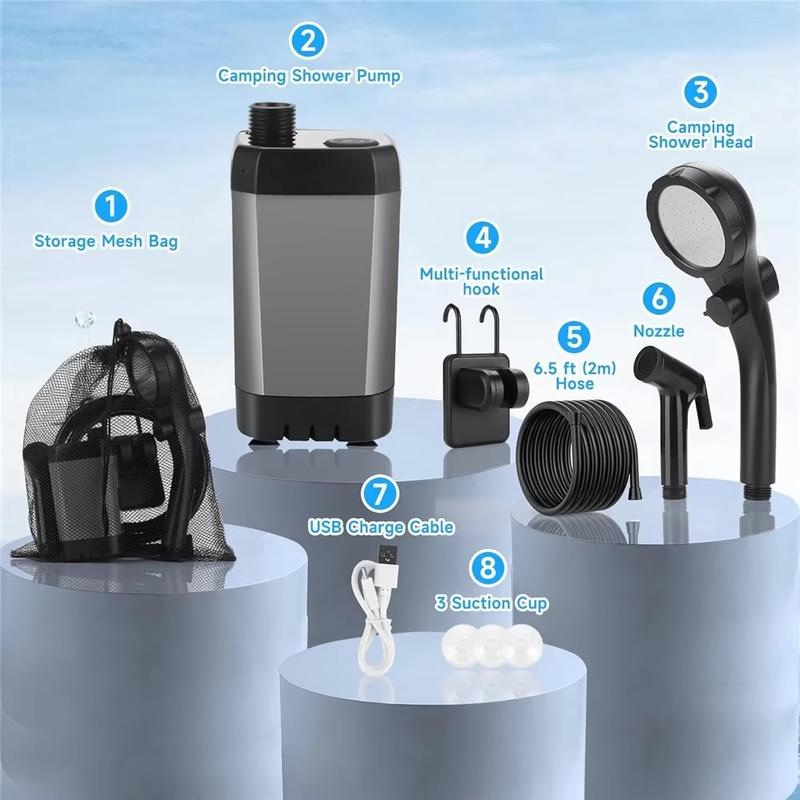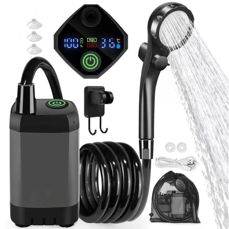 Tämä kannettava sähkökäyttöinen suihkupumppu on suunniteltu helpottamaan ulkona pesemistä ja tekemään siitä mukavampaa ja joustavampaa missä tahansa oletkin. Sisäänrakennetun 6000mAh:n akun, IPX7-luokan vedenkestävyyden ja älykkään digitaalinäytön ansiosta se on käytännöllinen valinta retkeilyyn, matkailuautoilua, rannalle lähtemiseen, vaellukseen, lemmikkien pesemiseen ja ulkotilojen siivoukseen. Langattoman rakenteensa ja kattavan lisävarustesarjansa ansiosta voit nauttia kätevämmästä suihkukokemuksesta ilman, että olet riippuvainen kiinteästä vesilähteestä tai pistorasiasta.