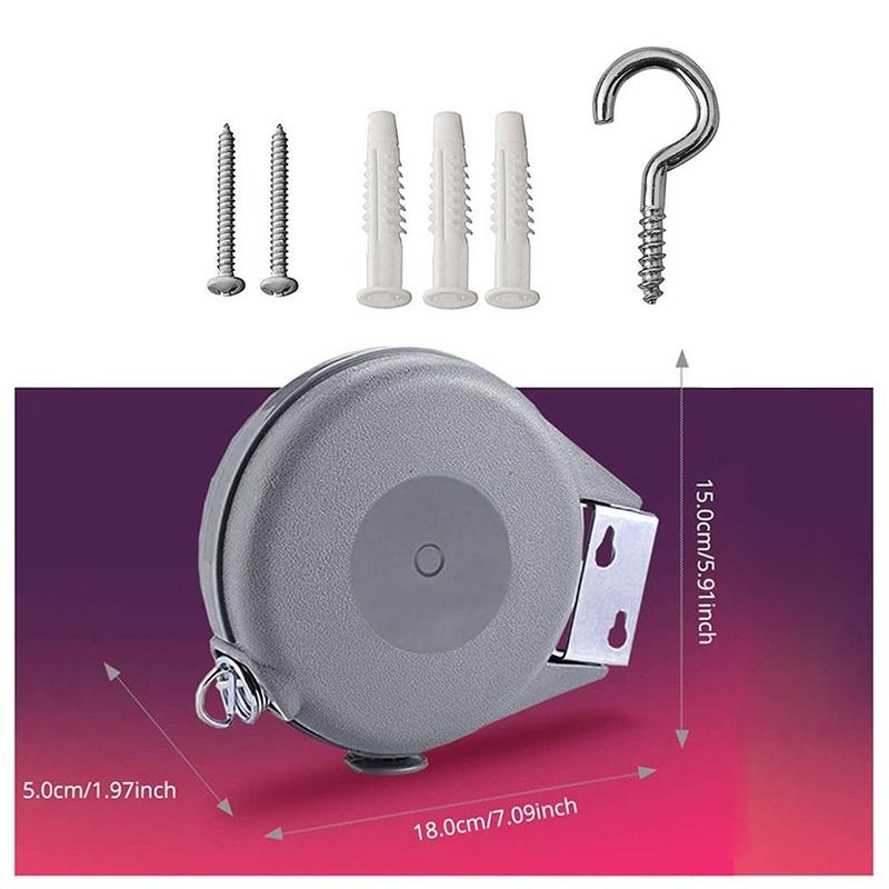 Tämä sisäänvedettävä pyykkinaru on kestävä, tilatehokas ja erittäin käytännöllinen. Sen pitkä 15metrin kuivausköysi ja kompakti koko tekevät siitä ihanteellisen kaikille, jotka tarvitsevat joustavia kuivausvaihtoehtoja kotona tai matkoilla.