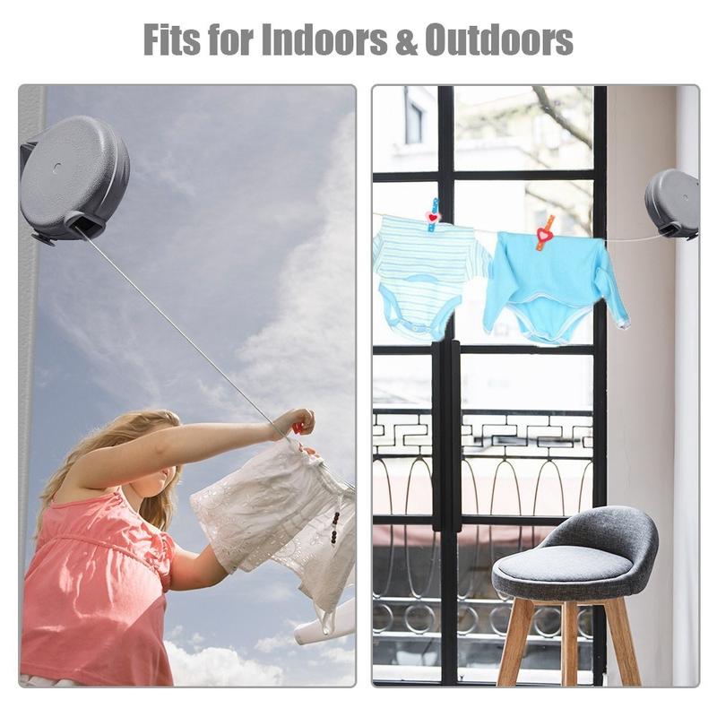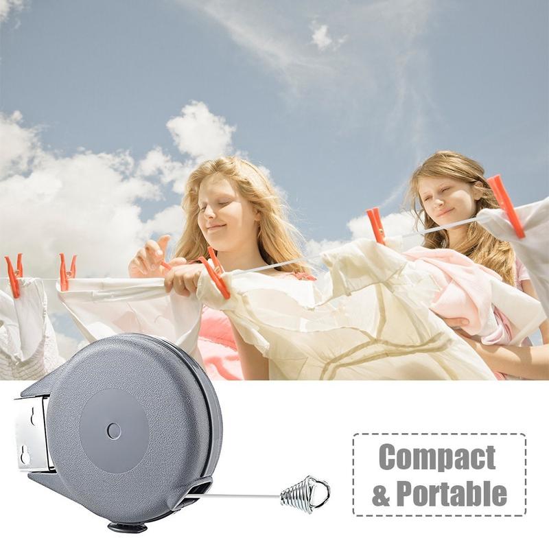 Tämä kannettava sisäänvedettävä pyykkinaru tarjoaa kätevän, joustavan ja tilaa säästävän ratkaisun vaatteiden kuivaamiseen kotona tai matkalla. Se on suunniteltu kestävällä ABS-kuorella ja raskaalla PVC-köydellä, ja se ulottuu jopa 15metriin, mikä tarjoaa runsaasti ripustustilaa viemättä tilaa, kun sitä ei käytetä.